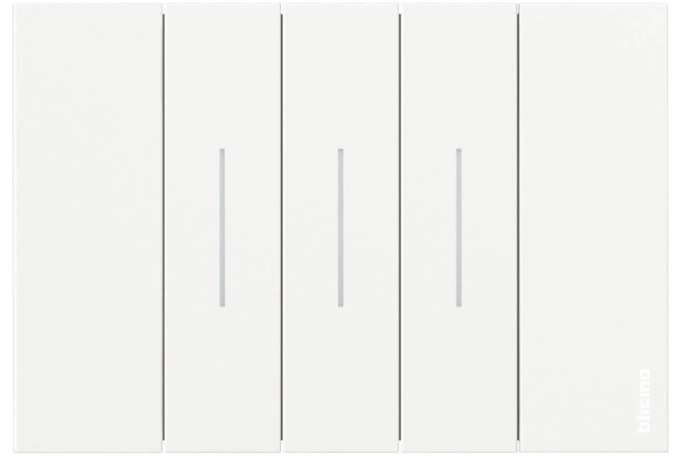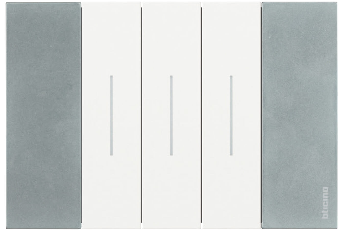 Un’evoluzione estetica che trasforma l’interruttore in una vera e propria interfaccia di controllo: il punto luce si presenta come una forma unica con spazio aumentato per le funzioni.